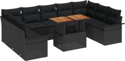Zestaw kanapowy do ogrodu vidaXL 10-częściowy z poduszkami czarny polirattan