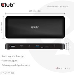 Club3D Dokovací stanice USB-C 14v1, 2xHDMI, 2xDP, 3xUSB-C, 1xUSB-C PD, 2xUSB, 1xRJ45, 1x3.5mm, microSD/SD, černá