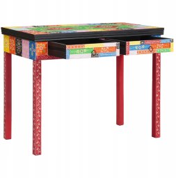Biurko wyróżnia się żywą estetyką, a jego kolorowy design dodaje charakteru każdemu wnętrzu. Inspiruje do kreatywności dzięki intensywnym i unikalnym geometrycznym wzorom, które przyciągają wzrok i nadają przestrzeni wyjątkowy klimat.