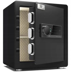 Sejf dostępny jest w dwóch eleganckich kolorach: czarnym i brązowym, co pozwala na łatwe dopasowanie do różnych stylów wnętrz. Jego nowoczesny, ale dyskretny design sprawia, że doskonale wkomponuje się w każde biuro, dom czy inne pomieszczenie.