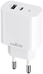 Maxlife ładowarka sieciowa PD QC MXTC-06-25AC 1x USB-C 1x USB 25W biała