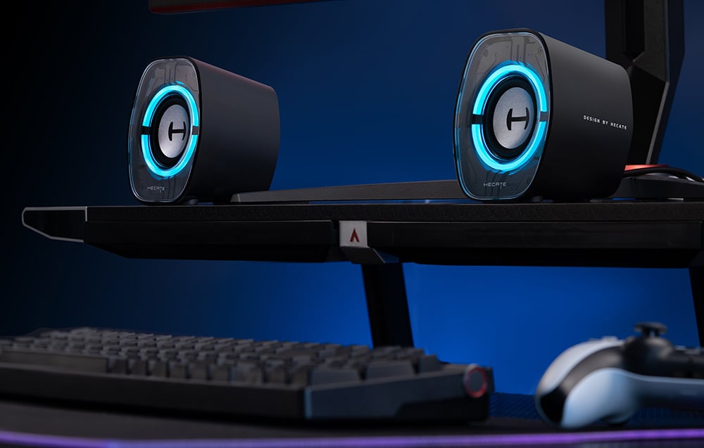 Edifier G1000 II to głośniki stworzone specjalnie z myślą o graczach i użytkownikach komputerów stacjonarnych, którzy szukają wydajnego sprzętu o gamingowym charakterze. Niewielkie wymiary sprawiają, że idealnie sprawdzają się na małych biurkach, nie zajmując wiele miejsca, a jednocześnie oferują brzmienie, które potrafi zaskoczyć głębią i mocą. Charakterystyczna, futurystyczna obudowa z 9 trybami podświetlenia RGB przyciąga wzrok i dobrze komponuje się zarówno z gamingowym zestawem, jak i minimalistycznym stanowiskiem.