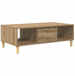 Stolik kawowy dąb artisan o wymiarach 103,5 x 60 x 35 cm to stylowy mebel, który harmonijnie łączy funkcjonalność z nowoczesnym designem. Jego minimalistyczna forma oraz proste linie sprawiają, że doskonale wpisuje się w współczesne wnętrza, stając się centralnym punktem w salonie. Wykonany głównie z drewna inżynieryjnego, stolik cechuje się trwałością oraz odpornością na uszkodzenia, co czyni go niezawodnym miejscem dla napojów, magazynów i innych dekoracyjnych elementów.