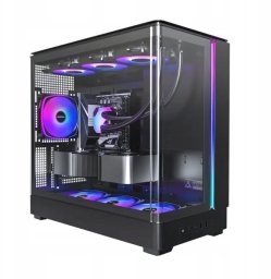 Obudowa jest fabrycznie wyposażona w cztery wentylatory, co zapewnia doskonały przepływ powietrza i skuteczne chłodzenie komponentów. Dodatkowo, możliwość zainstalowania do siedmiu wentylatorów sprawia, że możesz dostosować system chłodzenia do swoich indywidualnych potrzeb.