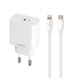 Maxlife ładowarka sieciowa PD QC MXTC-06-20C 1x USB-C 20W biała + kabel USB-C - Lightning 20W