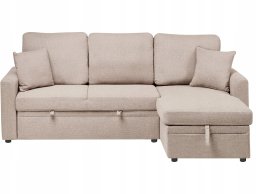 Narożnik rozkładany dla 3 osób NASSJO Len syntetyczny Jasnobrązowy ze schowkiem Lewostronny