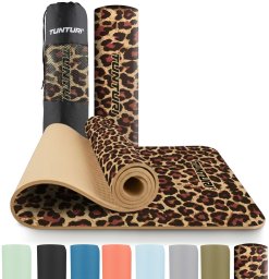 Mata do jogi Tunturi o grubości 8 mm w modnym wzorze lamparta to znakomity wybór dla tych, którzy pragną połączyć wygodę z estetyką. Jej unikalny design sprawia, że mata wyróżnia się na tle innych, a jednocześnie zapewnia komfort podczas praktykowania jogi, fitnessu czy pilatesu.