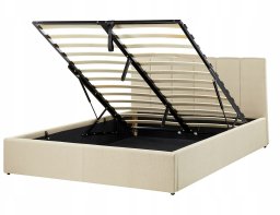 Łóżko z pojemnikiem DREUX o wymiarach 140 x 200 cm w eleganckim beżowym kolorze to doskonały wybór do każdej sypialni. Dzięki podnoszonej ramie z listew, oferuje dodatkową przestrzeń do przechowywania, co pozwala na lepsze zorganizowanie wnętrza. Jego nowoczesny i minimalistyczny design sprawia, że idealnie wpasowuje się w różne style aranżacji, wprowadzając do Twojego wnętrza elegancję i funkcjonalność.