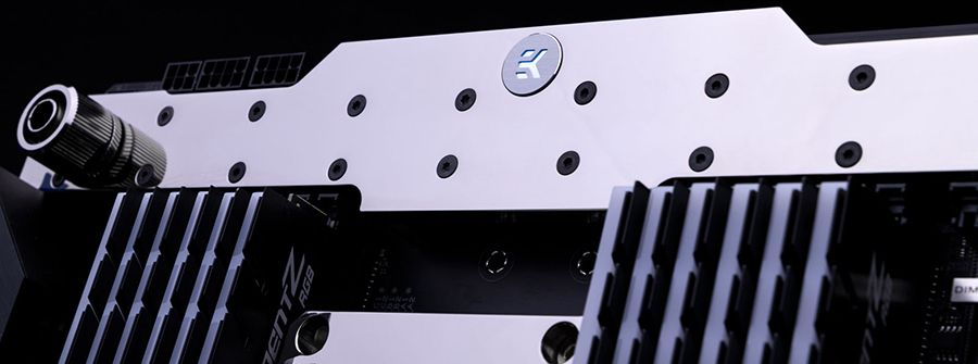 EK-VRM ASUS ROG Dominus Extreme to chłodzenie wodne specjalnie zaprojektowane dla płyty głównej ASUS ROG Dominus. Chłodzi komponenty modułu regulacji napięcia (VRM), zapewniając stabilne podkręcanie i dłuższą żywotność sprzętu. Ciecz przepływa bezpośrednio przez krytyczne obszary, tranzystory MOSFET i cewki indukcyjne, zapewniając entuzjastom doskonałe rozwiązanie dla wysokich i stabilnych przetaktowań. Ma zintegrowane podświetlenie RGB z 4-pinowym złączem LED RGB 12V, które łączy się z 4-pinowym nagłówkiem LED płyty głównej lub może być podłączone do dowolnego standardowego 4-pinowego kontrolera LED 12V. W pełni obsługuje oprogramowanie sterujące ASUS AURA LED.