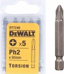 Zestaw zawiera pięć końcówek wkrętakowych o oznaczeniu DT7246, co czyni go doskonałym wyborem dla osób poszukujących kompleksowego rozwiązania do wkręcania. Dzięki różnorodności zastosowań, końcówki te sprawdzą się w wielu projektach.