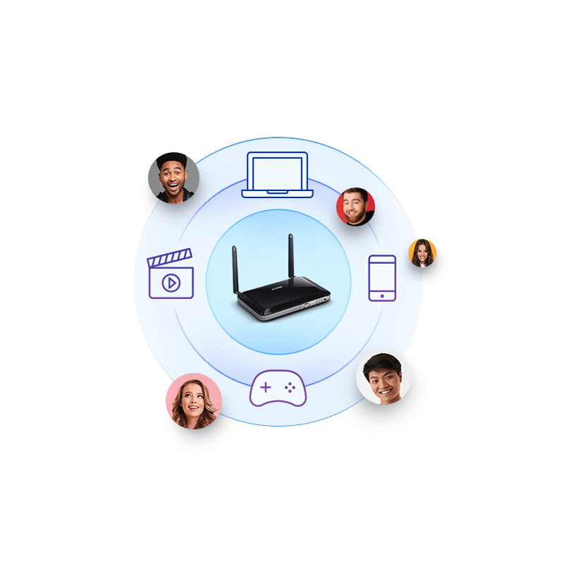 Router LTE 4G firmy D-Link (DWR-921) umożliwia dostęp oraz współużytkowanie szerokopasmowej sieci komórkowej LTE 4G lub 3G. Po połączeniu użytkownik może przesyłać dane, strumieniować materiały multimedialne oraz wysyłać wiadomości SMS. Wystarczy w urządzeniu umieścić kartę SIM/USIM, by współużytkować połączenie LTE 4G lub 3G z Internetem za pośrednictwem bezpiecznej sieci bezprzewodowej lub jednego z czterech dostępnych portów Ethernet.