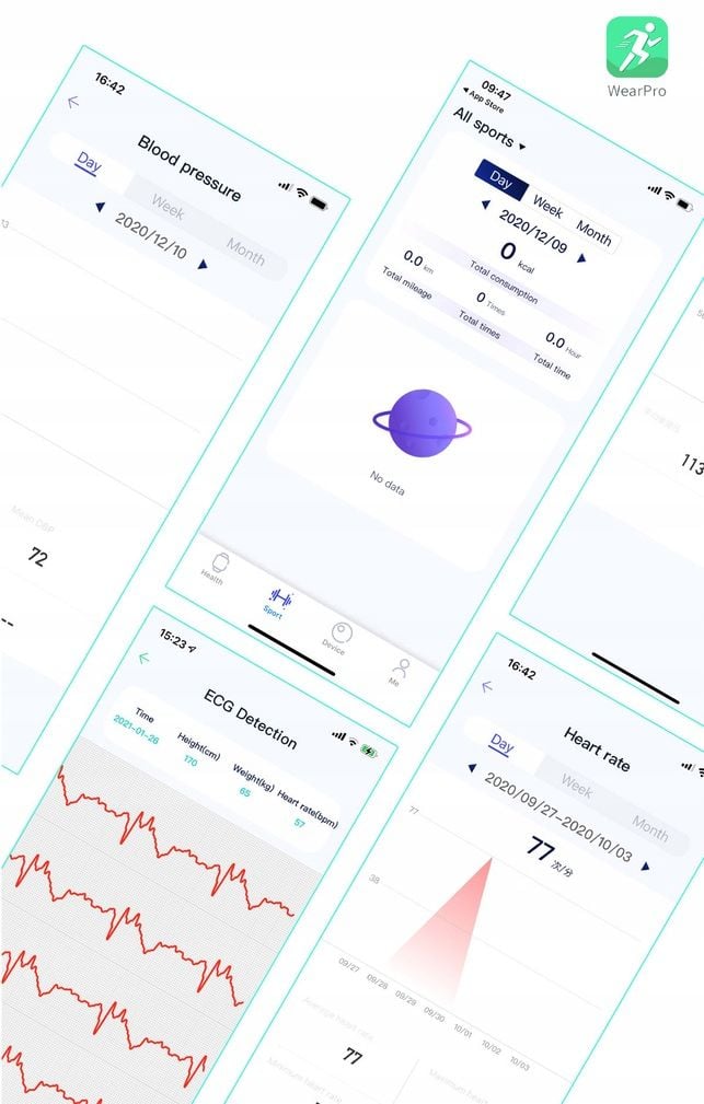Jeżeli chcemy prowadzić dziennik swoich osiągnięć, potrzebna jest zainstalowana aplikacja WearPro na naszym smartphonie i sparowanie ze sobą urządzeń. Aplikacje możemy ściągnąć na telefon wyposażony w iOS lub Android.