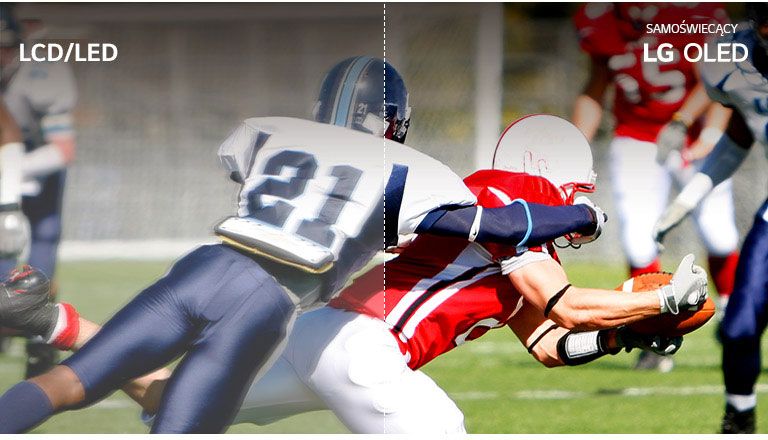 Podczas oglądania sportu za wszelką cenę należy unikać poświaty (rozmazania w ruchu). Teraz, dzięki funkcji OLED Motion Pro, która likwiduje rozmazanie w ruchu, dostrzeżesz każdy, nawet najbardziej subtelny ruch każdego zawodnika. Telewizor LG OLED pozwoli Ci zapomnieć o rozmazaniu i miganiu.