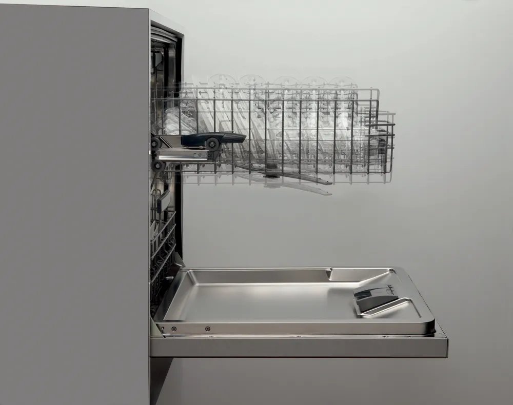 System regulacji położenia górnego kosza Rackmatic, służy dopasowaniu wnętrza do aktualnych potrzeb. System pozwala zmienić ustawienie kosza na różnych wysokościach, a wybraną pozycję można łatwo zmienić , nawet gdy kosz jest pełen. Dzięki temu możesz dostosować wnętrze do swoich potrzeb nawet dla bardzo wysokich talerzy w dolnym koszu, czy wysokich kieliszków czy kufli w górnym koszu.