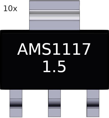 AMS1117-1.5V to stabilizator napięcia o wydajności prądowej 1A i napięciu wyjściowym 1.5V. Produkt jest dostarczany w obudowie SOT-223.