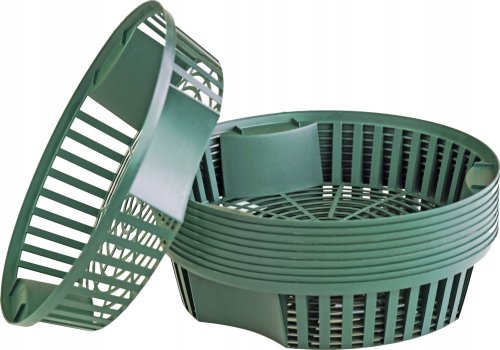 Koszyk na cebulki o średnicy 21,5 cm to znakomite rozwiązanie dla każdego pasjonata ogrodnictwa. W zestawie znajduje się 10 sztuk, co zapewnia wygodę i efektywność w organizacji przestrzeni do przechowywania roślin. Okrągły kształt oraz zielony kolor nadają mu nowoczesny, industrialny styl, który doskonale wkomponuje się w każde otoczenie.