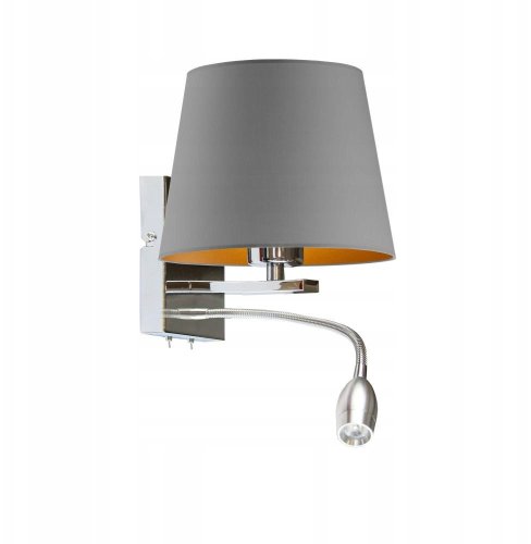 Kinkiet dostępny jest w różnych wariantach kolorystycznych abażura, takich jak biały, szary stalowy, butelkowa zieleń, granatowy oraz czarny, co umożliwia łatwe dopasowanie do indywidualnych preferencji. Złote wnętrze abażura nadaje mu wyjątkowego charakteru, a stelaż wykonany z chromu lub stali szczotkowanej zapewnia nowoczesny wygląd.