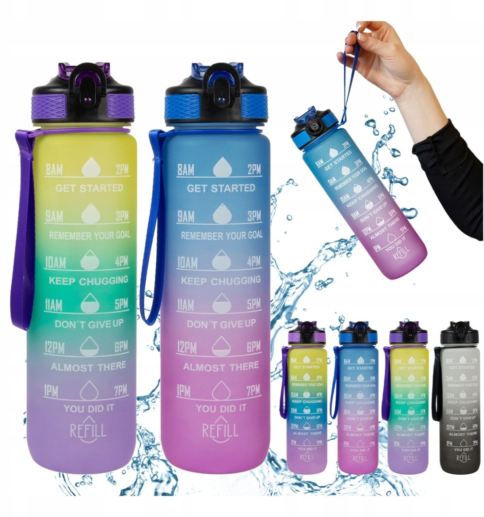 2x Butelka Sportowa Bidon na Wodę 1L Motywacyjny z Podziałką Rurka Fitness