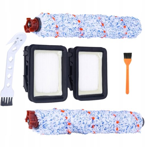 W skład zestawu wchodzą dwie obrotowe rolki Multi-Surface oraz dwa filtry HEPA. Rolki, wykonane z mikrofibry i nylonu, gwarantują znakomite rezultaty czyszczenia, a filtry HEPA skutecznie ograniczają przenikanie kurzu do powietrza, co jest kluczowe dla zdrowego funkcjonowania w Twoim domu.