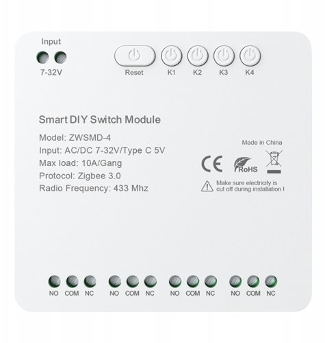 4-kanałowy moduł przełącznika ZigBee ze stykiem beznapięciowym DC 32V Avatto ZWSMMD-4-32V