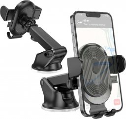 Uchwyt jest w pełni funkcjonalny, współpracuje z większością urządzeń dostępnych na rynku (preferowana wielkość smartfona od 4.7 do 7 cali). Dodatkowo mocna przyssawka stabilnie przytwierdzi uchwyt do szyby bądź deski rozdzielczej. Uchwyt posiada niewielkie wymiary, dzięki czemu nie zasłania widoczności.