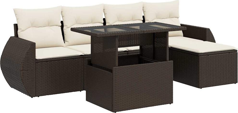 6-cz. zestaw wypoczynkowy do ogrodu, z poduszkami, brązowy