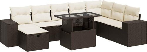 9-cz. zestaw mebli ogrodowych z poduszkami, brązowy, polirattan
