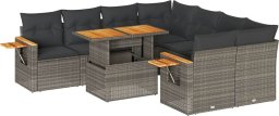 9-cz. zestaw mebli z poduszkami, szary, polirattan i akacja