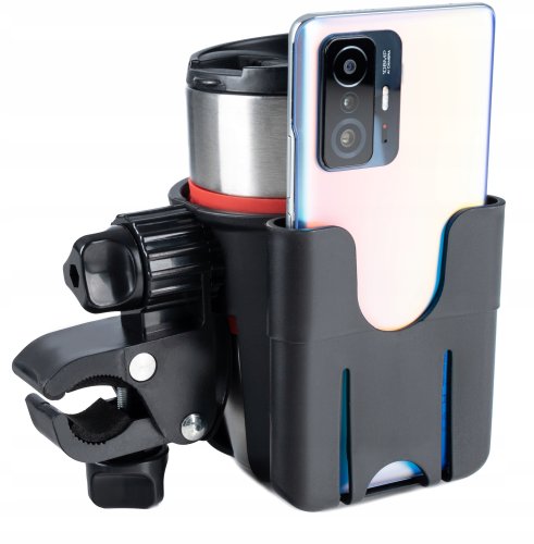 Uchwyt pomieści wszystkie rodzaje telefonów oraz pojemników na napoje, takich jak butelki, bidony, termosy i kubki. Dzięki przegrodzie na telefon, masz urządzenie zawsze blisko siebie, co pozwala na wygodne korzystanie z niego podczas jazdy.