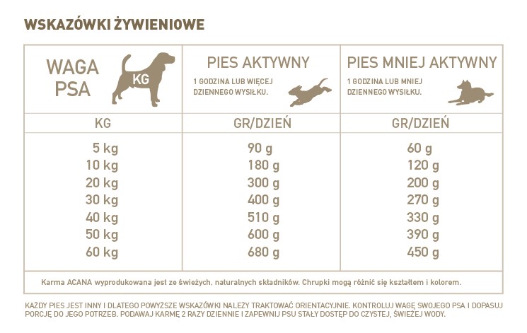 FORMUŁA JEDZENIA ACANA ODPOWIADA WYMAGANIOM ŻYWIENIOWYM USTALONYM PRZEZ AAFCO - PROFILE ŻYWIENIOWE DLA PSÓW WE WSZYSTKICH STADIACH ŻYCIA