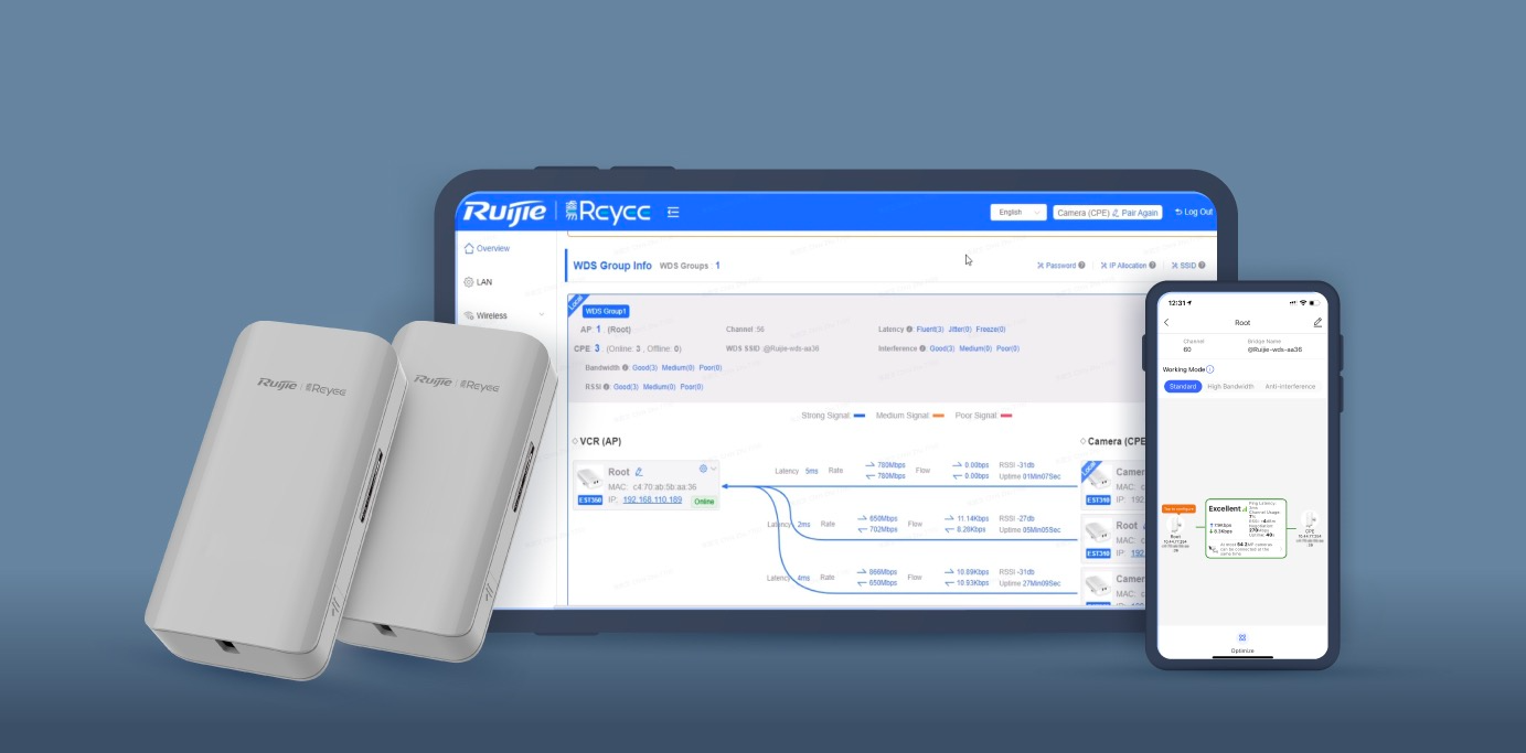 Jedną z największych zalet zestawu RG-EST310 V2 jest prostota instalacji dzięki fabrycznemu parowaniu urządzeń. Eliminuje to potrzebę skomplikowanej konfiguracji dla podstawowego połączenia typu Point-to-Point (PTP). Dodatkowo, mostek obsługuje zarządzanie poprzez interfejs webowy, aplikację mobilną Ruijie Reyee oraz System Centralnego Zarządzania Ruijie Cloud. Zdalne zarządzanie, monitorowanie statusu i diagnostyka są proste, co ułatwia administratorom sieci utrzymanie pełnej kontroli nad systemem. Ta elastyczność w zarządzaniu jest szczególnie cenna w rozległych instalacjach CCTV.