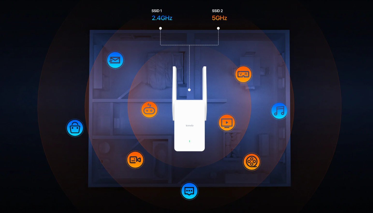 Ma dwie antenty o wysokim zysku 5 dBi. Może efektywnie zwiększać transmisję sygnału oraz wrażliwość odbioru i rozszerzać Wi-Fi do każde zakątka Twoje domu.