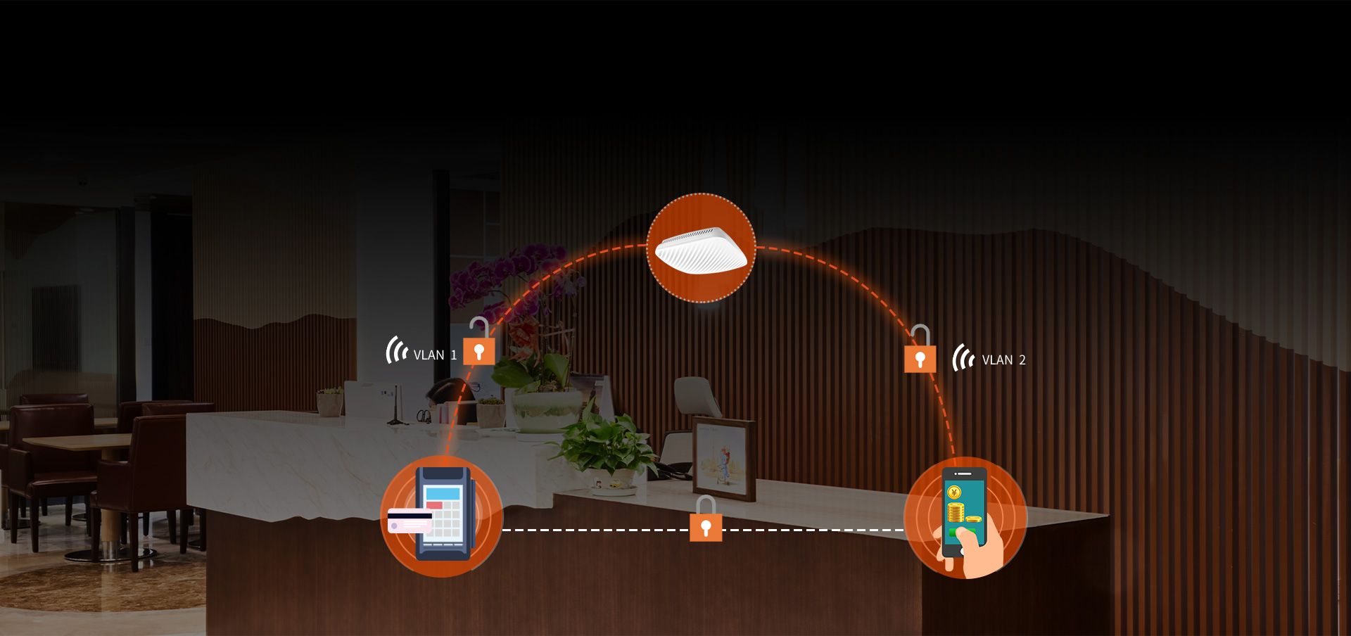 i21 dzięki obsłudze wielu SSID oraz VLAN może rozróżniać użytkowników, chroniąc bezpieczeństwo danych.