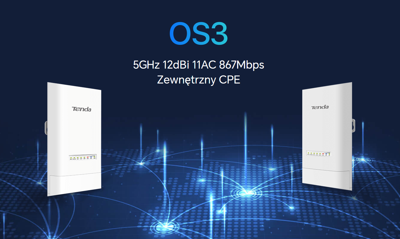 OS3 5GHz Outdoor CPE jest przeznaczony do rozwiązania PtP&P2MP, do transmisji nadzoru wideo i bezprzewodowe dostępu szerokopasmowe. Obsługuje technologię bezprzewodową 11ac. Maksymalna prędkość bezprzewodowa może wynosić do 867 Mb/s. Posiada antenę kierunkową o podwójnej polaryzacji 12dBi, która zapewnia wydajny sposób odbierania i utrzymywania stabilne połączenia dalekie zasięgu.