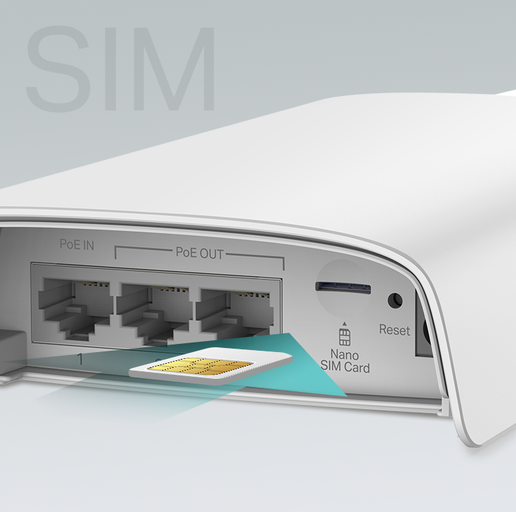 Włóż kartę Nano SIM lub podłącz do portu Ethernet WAN, aby uzyskać gigabitową sieć Wi‑Fi. Korzystaj z bezproblemowego łączenia kamer do monitoringu za pomocą kabla lub sieci bezprzewodowej