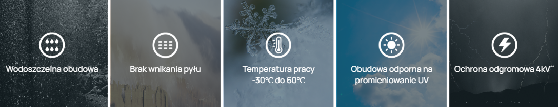Obudowa urządzenia otrzymała ocenę klasy szczelności IP55 w testach ochrony przed wnikaniem. Brama sieciowa poradzi sobie z trudnymi warunkami panującymi na zewnątrz budynku.