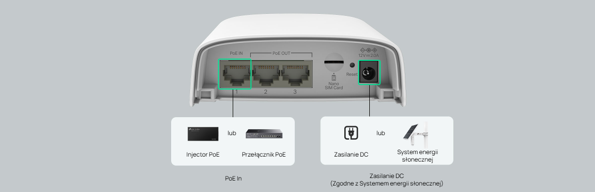 Możliwość zasilania przez PoE lub DC (zgodnego z panelami słonecznymi) pokonuje ograniczenia dostępu do sieci.