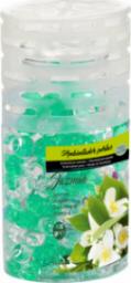 Acorde jaśminowy żel do odświeżania powietrza Zwalczaj nieprzyjemne zapachy dzięki odświeżającym żelowym perełkom Acorde! Perełki odświeżacza powietrza zapewnią Twojemu pokojowi, a może i całemu domowi, pyszny kwiatowo-owocowy aromat. Zapach ten powstaje dzięki dodatkowi ważnego składnika, jakim jest jaśmin. Perełki mogą być przechowywane w małych doniczkach lub naczyniach w całym domu i są dobrym dodatkiem na przykład w łazience lub toalecie. Zamień swój dom w świeże i owocowe miejsce! Specyfikacja: Kolor żelowej perły: miętowa zieleń, przezroczysty Kolor opakowania: przezroczysty Płeć: unisex Materiał opakowania: tworzywo sztuczne Wymiary opakowania: 8,5 x 6,5 x 16 cm (dł. x szer. x wys.) Perły zapachowe: jaśmin Typ zapachu: kwiatowy, owocowy Waga: ok. 400 gramów Wiek: od 6 lat