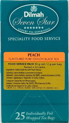 Dilmah Peach ma łagodny, słodki aromat współgrający z charakterem lekkiej herbaty. Zaparzona klasycznie, na deser, herbata ta najlepiej smakuje bez dodatków – do mrożonego napoju można dodać odrobinę cukru, plasterek cytryny lub listek świeżej mięty.