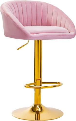 Hoker wyróżnia się przyjemnym w dotyku, welwetowym obiciem w odcieniach różu, które nadaje mu ekskluzywny charakter. Stylowe przeszycia na oparciu hokera podkreślają elegancki wygląd i staranne wykonanie. Okrągła podstawa z antypoślizgową gumą zapewnia stabilność, a złoty kolor harmonizuje z welwetowym obiciem, nadając meblowi wyrafinowany styl. Ergonomicznie wyprofilowane siedzisko oraz regulowana wysokość sprawiają, że hoker jest idealnym wyborem dla osób ceniących sobie styl oraz wygodę.