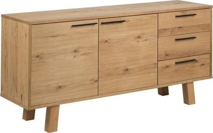 Naturalny kolor Kredensu Chara doda pomieszczeniom w Twoim domu ciepła, rozświetlając je i potęgując poczucie przytulności. Ponadto, posiada on olejowane wykończenia elementów. Dzięki tej impregnacji jest należycie zabezpieczony przed działaniem czynników zewnętrznych. Nie blaknie na słońcu i jest odporny na uszkodzenia mechaniczne. Kredens Chara posiada trzy pakowane szuflady oraz pojemne półki. Dzięki temu przechowasz najpotrzebniejszy rzeczy i zawsze będziesz je mieć tuż pod ręką. Długowieczny Kredens Chara to dobry sposób na przełamywanie ducha nowoczesnych wnętrz.