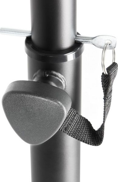 Regulowany drążek statywowy z bolcem gwintowanym M20. Wykonany został ze stali, kolor czarny.