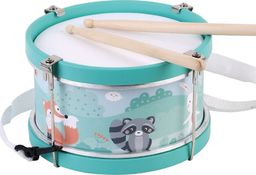 Śliczny bębenek od Adam Toys to świetna zabawka dla wszelkiego rodzaju zabaw ruchowych, rytmicznych i umuzykalniających. Bębenki to jedne z ulubionych zabawek muzycznych. Bębenek zdobią znane Wam już leśne zwierzęta. jest piękny i kolorowy.
