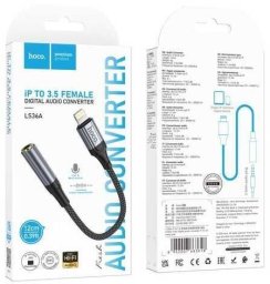 Adapter AUX Lightning do Jack 3,5 mm Hoco 0,12 m LS36A szary
