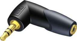 CLP204 to adapter żeński jack 3,5 mm na męski jack 3,5 mm z kątem 90°, aby zmniejszyć naprężenie kabla, gdy podłączone urządzenie jest wbudowane w ścianę lub ułożone w rynnie kablowej. Mocne wytłoczenie na złączu zapewnia izolację od podłoża i daje solidne odczucie.