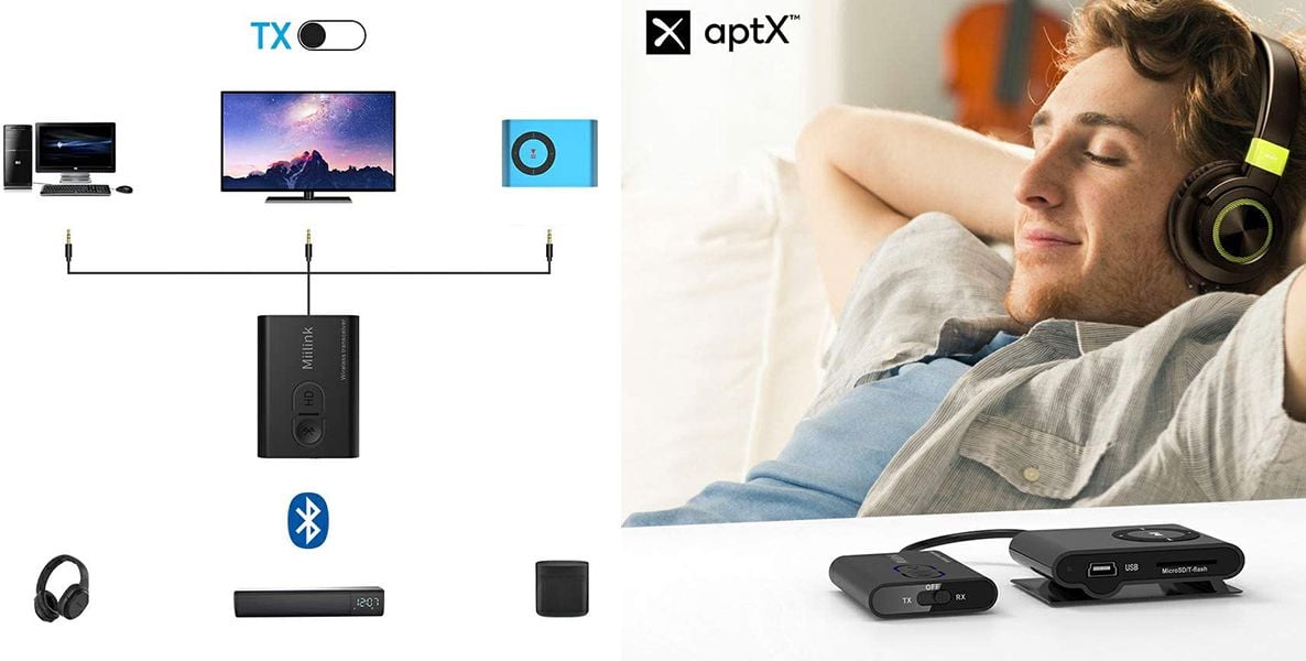 Podłącz nadajnik Bluetooth 1Mii do wyjścia audio 3,5 mm źródła dźwięku innego niż Bluetooth (telewizor, iPod, odtwarzacz CD, komputer), a następnie sparuj go ze słuchawkami lub głośnikami Bluetooth.