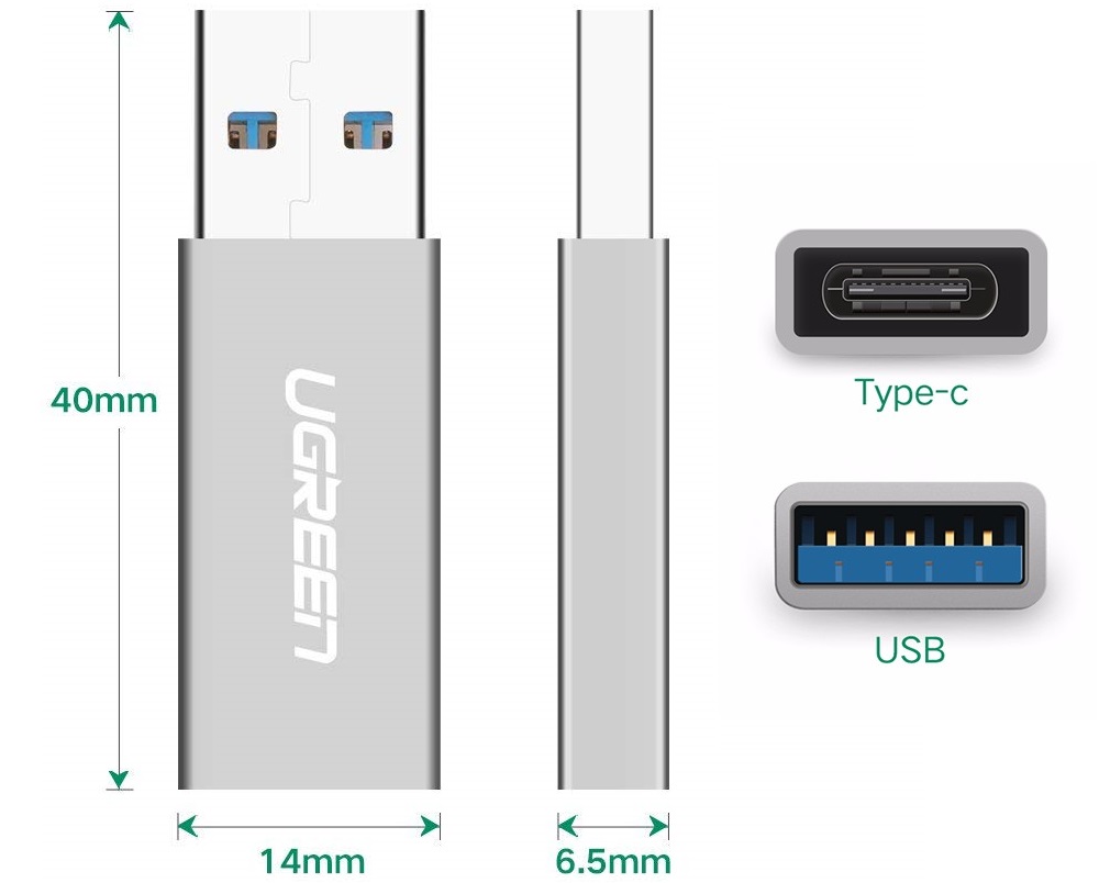 Adapter USB Ugreen Adapter USB 3.0 do USB-C 3.1 PD UGREEN Szary