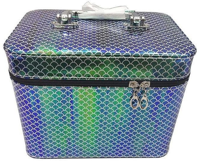 Kuferek w rozmiarze L. Z wygodną rączką, zasuwany na zsuwak z lusterkiem. Pomieści wiele drobiazgów: kosmetyków, biżuterii i innych. Wymiary opakowania: 23 x 19 x 16 cm