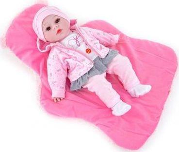 Lalka bobas o wielkości 40 cm. Zabawka z efektami dźwiękowymi: śpiewa i mówi. Ubrana jest w różowy strój: legginsy, bluzę w kokardki, czapkę, białe skarpetki i bluzeczkę z aplikacją. Baterie: 3 x LR44( załączone) Wymiary opakowania: 46 x 26,5 x 9 cm.