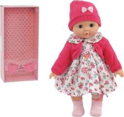 Śliczna laleczka to marzenie małych dziewczynek. Lalka która śpiewa i mówi po polsku, będzie doskonałym prezentem. Tułów ma miękki, a kończyny z bardzo miłego w dotyku tworzywa. Lalka ubrana w sukienkę w drobne groszki, posiada kubraczek oraz kapelusik, stopki lalki zdobią skarpetki. Lalka zasilana bateriami: 3 x LR 44 1,5 V.